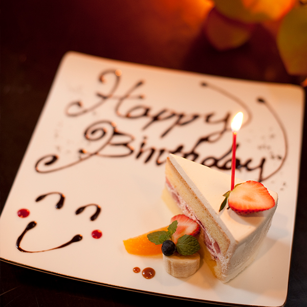 お誕生日、記念日などの特別な行事に、メッセージプレート&オリジナルケーキでお祝い致します。